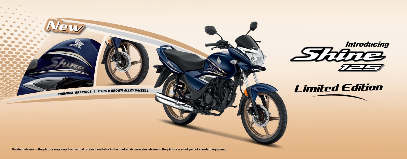Elegant chrome accents on the side covers enhance the Shine’s premium stance.